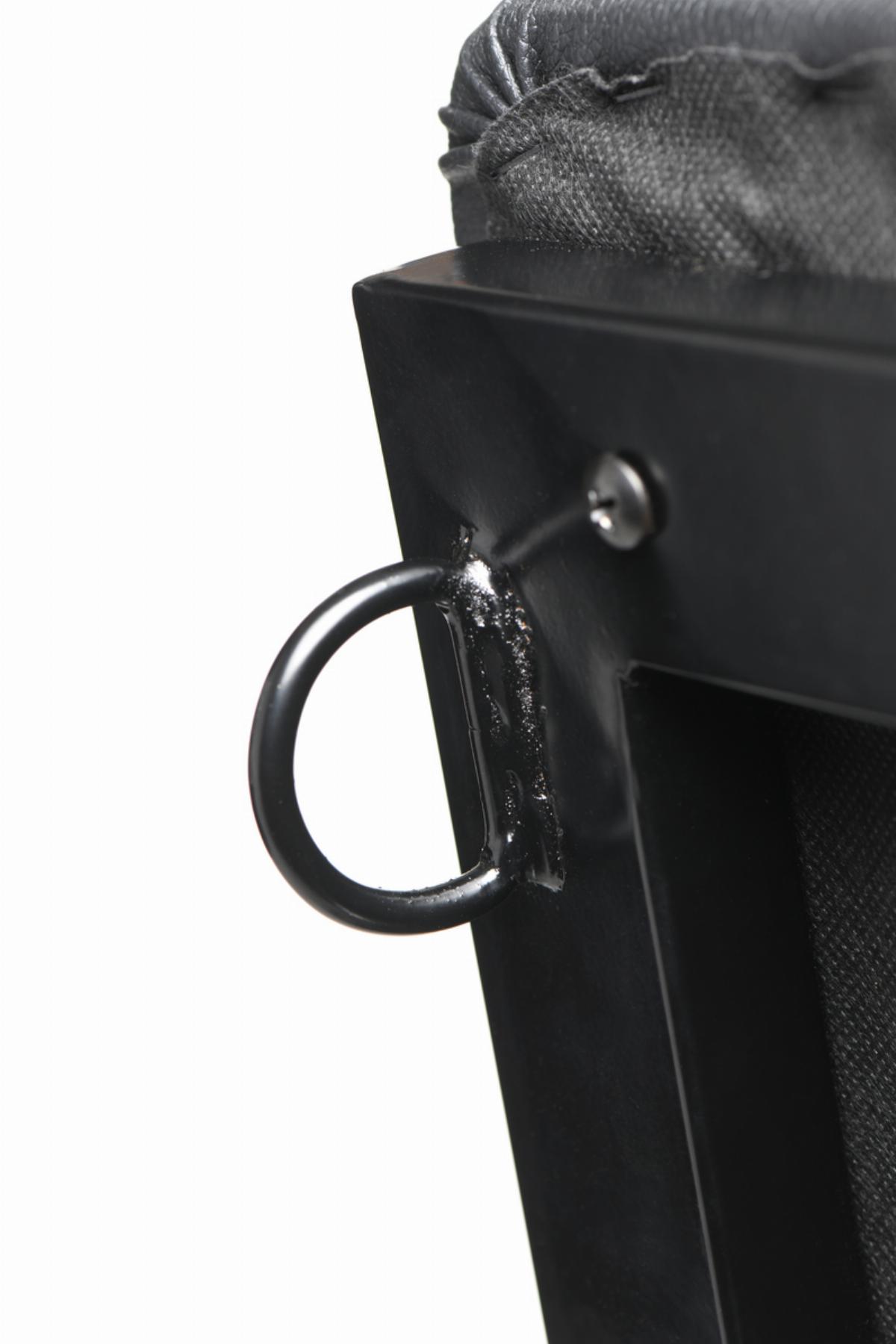 Verwende die beiden D-Ringe oben auf der Rückenlehne, um die Handgelenkmanschetten um die Hände deines Partners zu sichern oder benutze sie, um Spielzeuge mit einem Clip oder Karabiner aufzuhängen.
