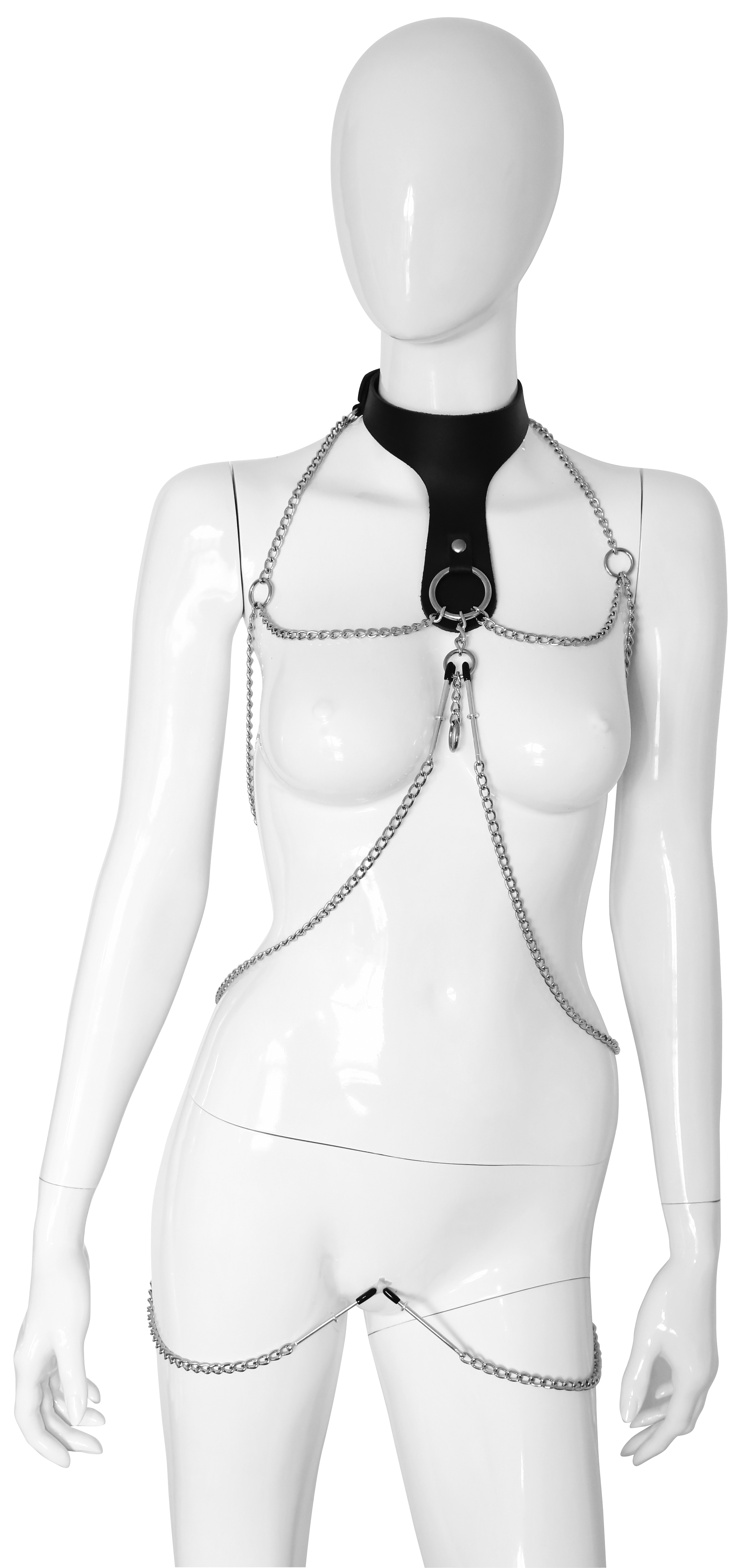 Leder Halsband mit Ketten und Pinzetten