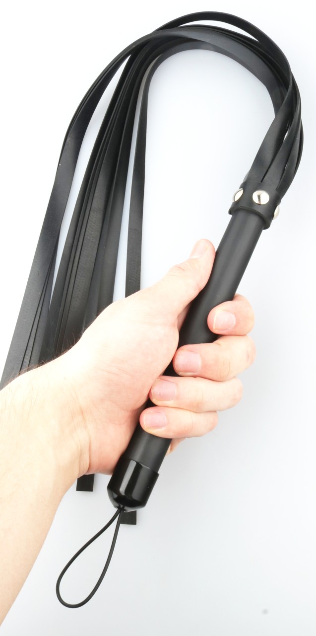 Peitsche aus Leder mit soften Riemen "Rivet Style" Schwarz