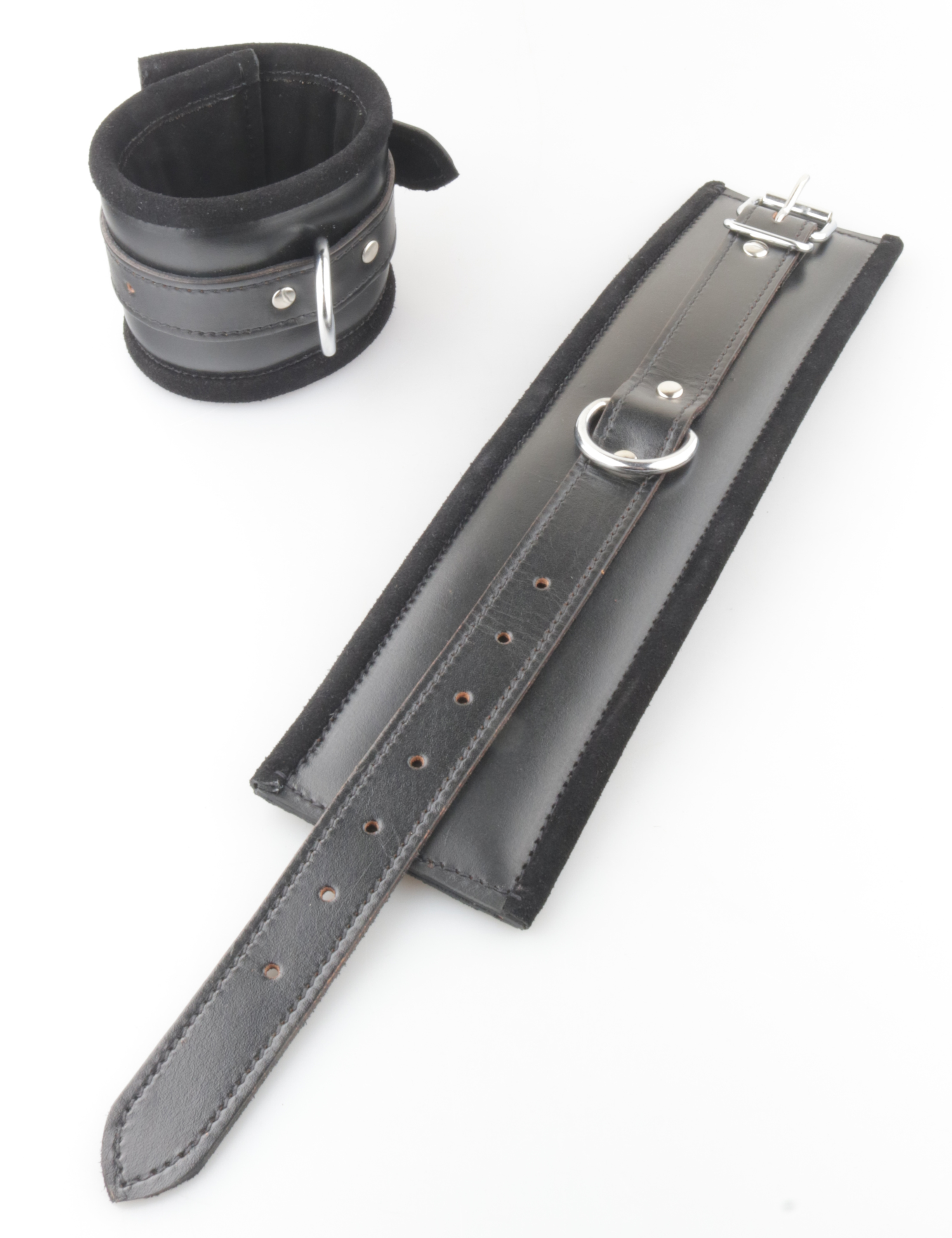 Edelstahl Fesselset mit Lederfutter,abschließbar - lockable stainless steel cuffset