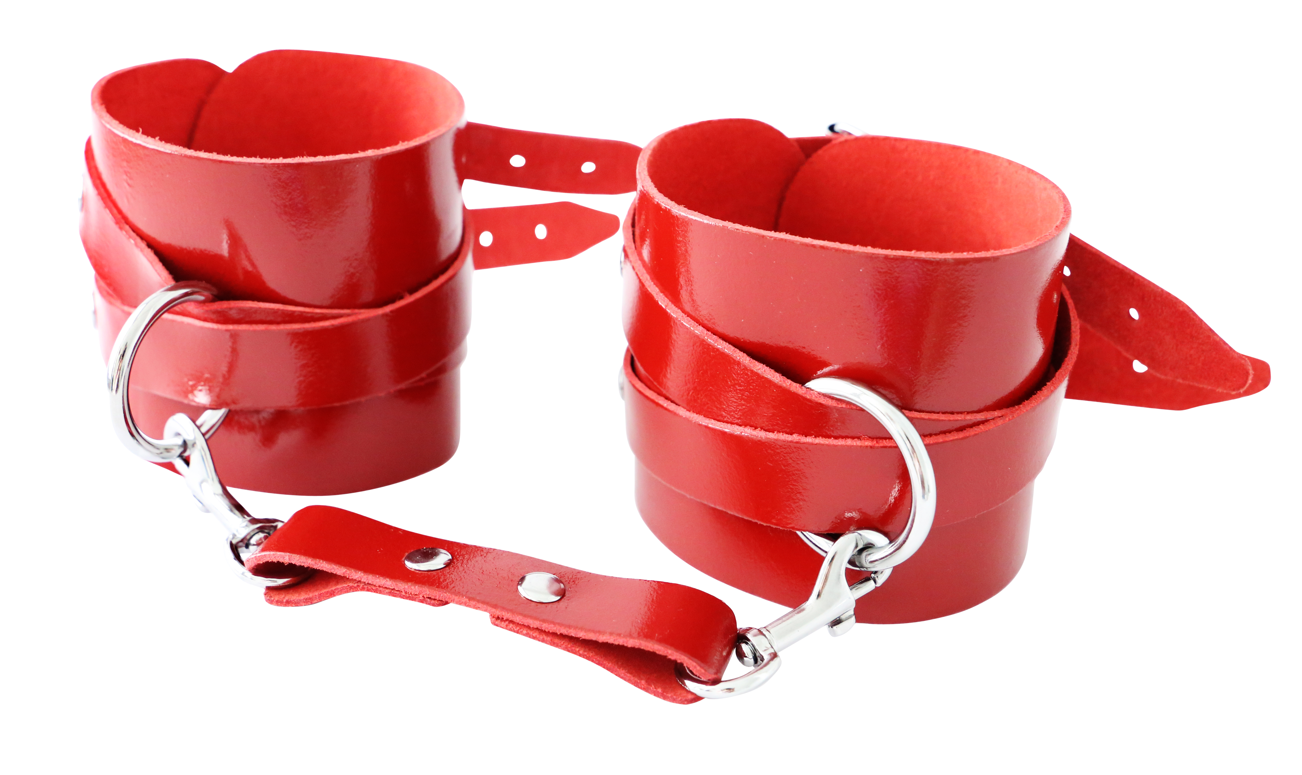 Leder Fesselset Rot/Schwarz mit drehbaren Edelstahlringen
