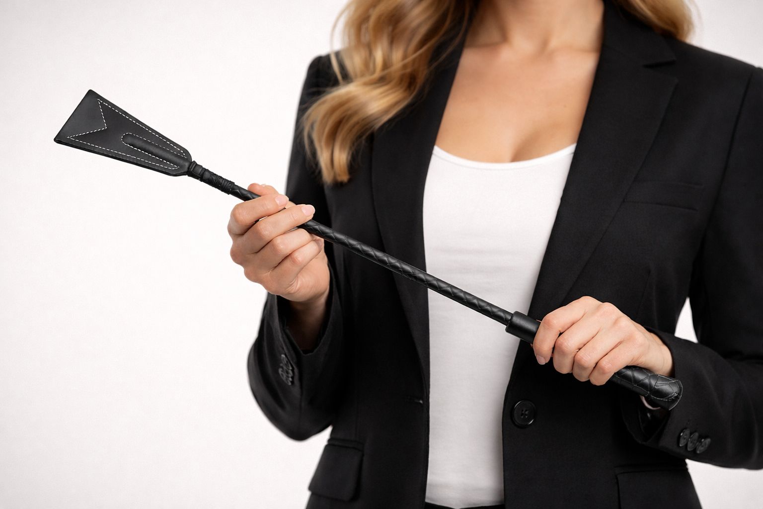 Durch die breite Trefferfläche wirkt die Gerte effektiv und spürbar, bleibt dabei aber gut steuerbar – perfekt für gezielte „Korrekturen“ und klare Ansagen.