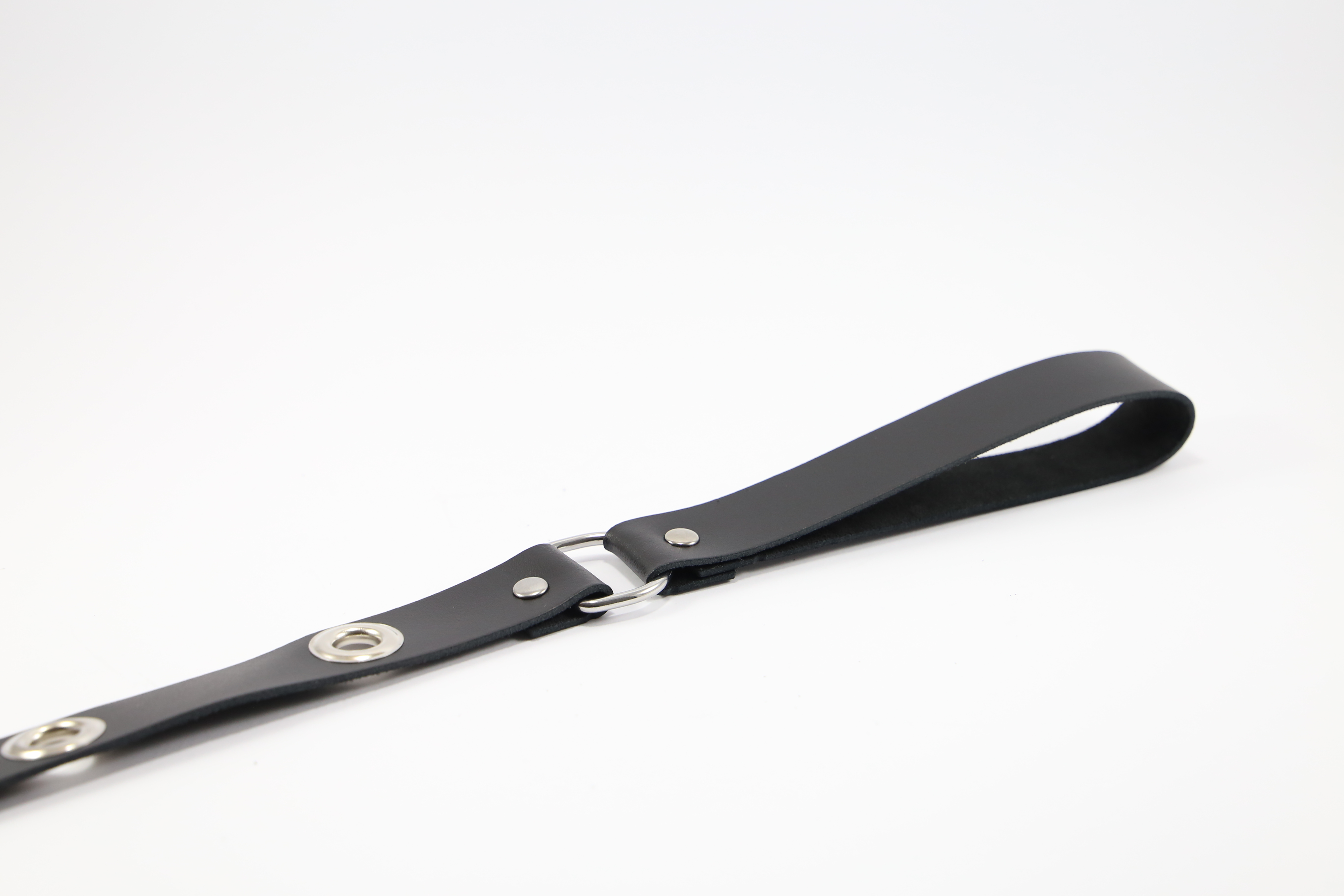 Halsfessel und Leine aus robustem Leder und verstellbar.