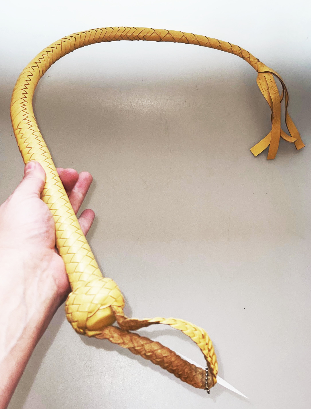 Bei Bedarf einfach ein paar kleine Knoten am Ende hinzufügen. Dies verschärft die Peitsche ungemein. :-)