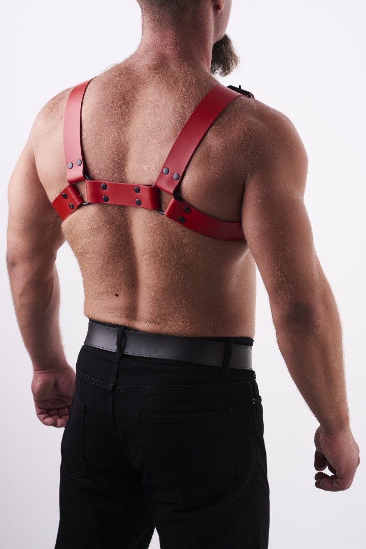 Leder Brust Harness Rot
