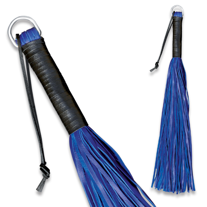 Lederpeitsche aus 64 blauen und soften Lederriemen (Nappaleder)