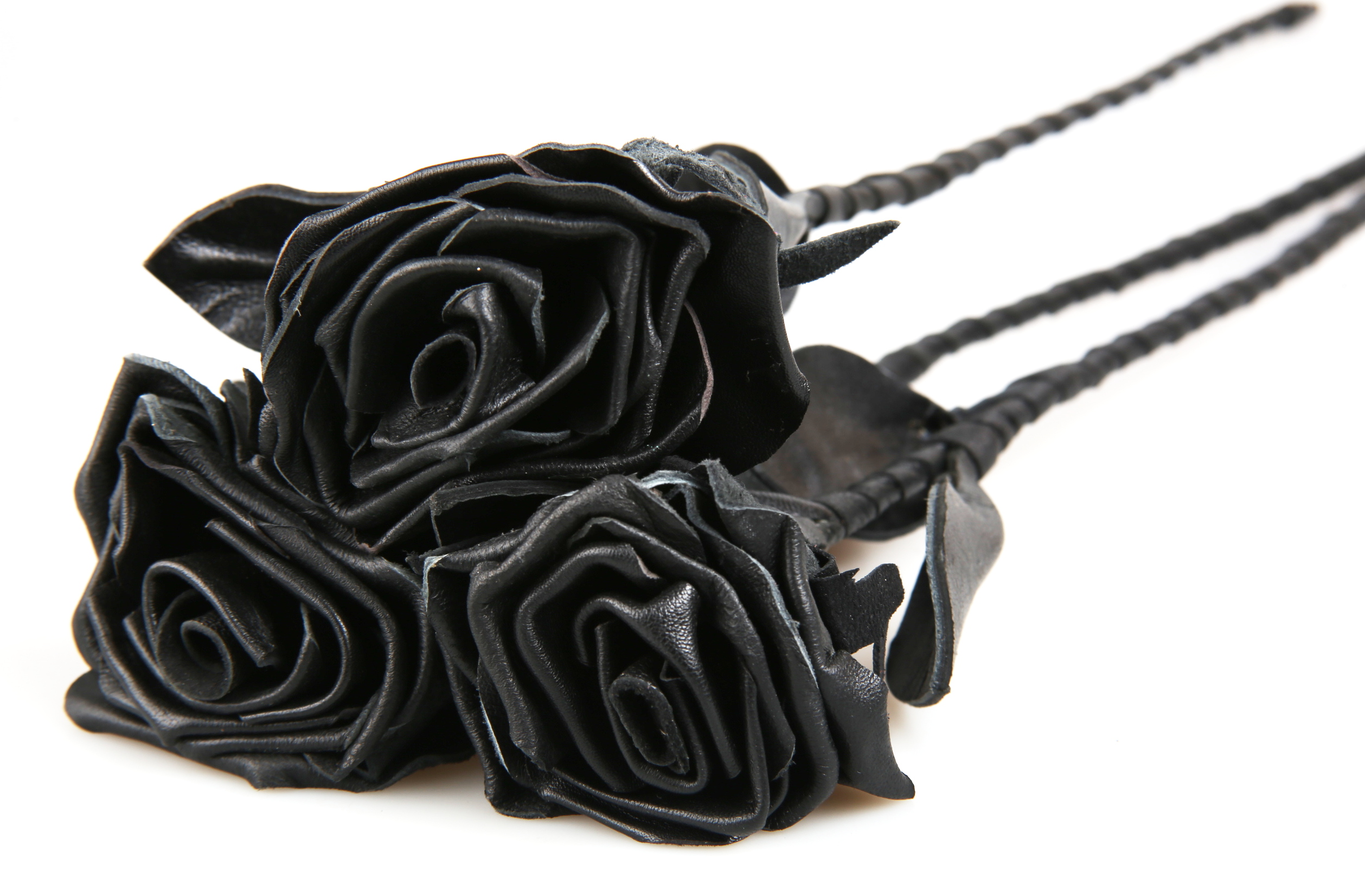 Leder Rose - Black /Schwarz - Dreier-Set