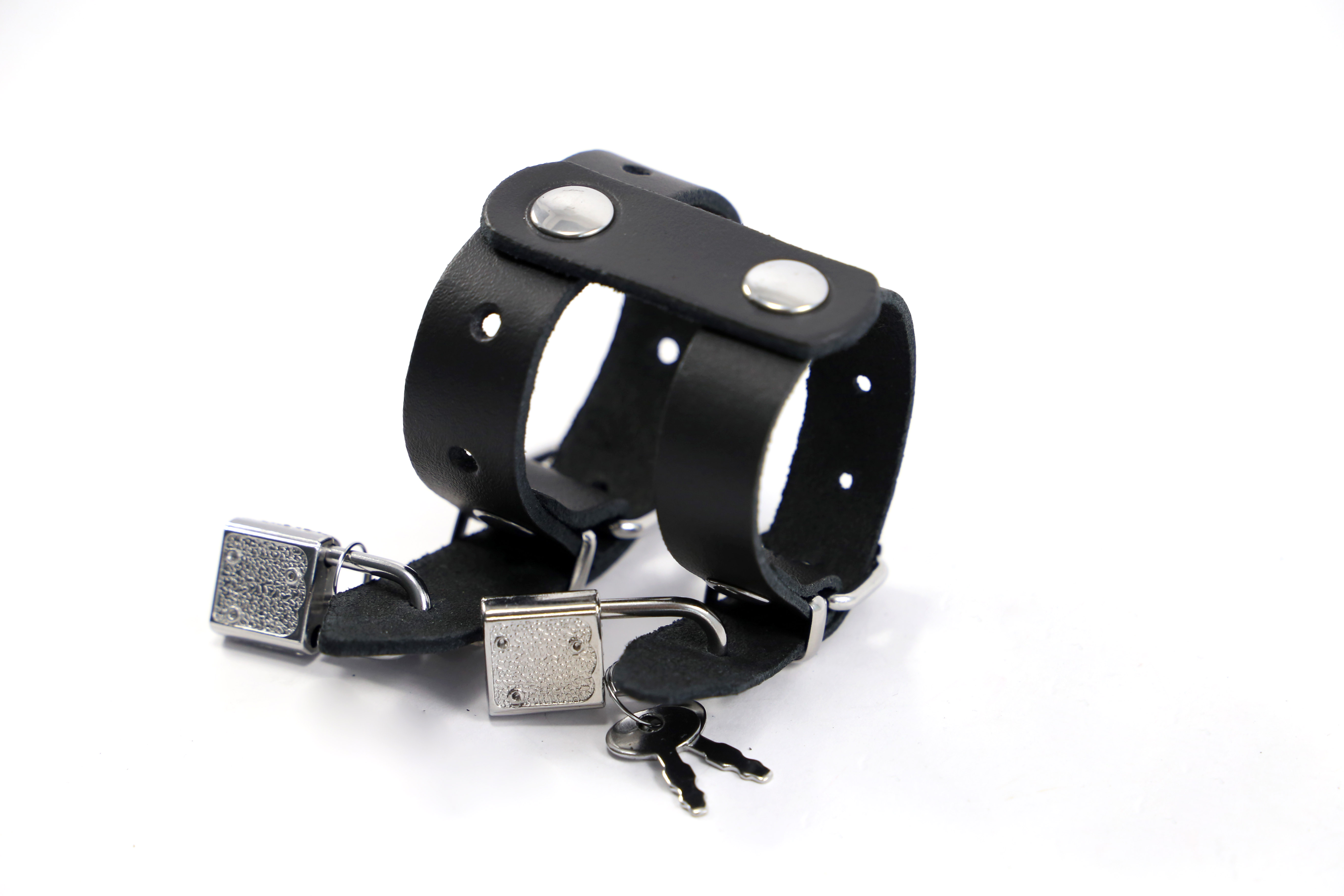 Leder Fesselset Schwarz mit drehbaren Edelstahlringen