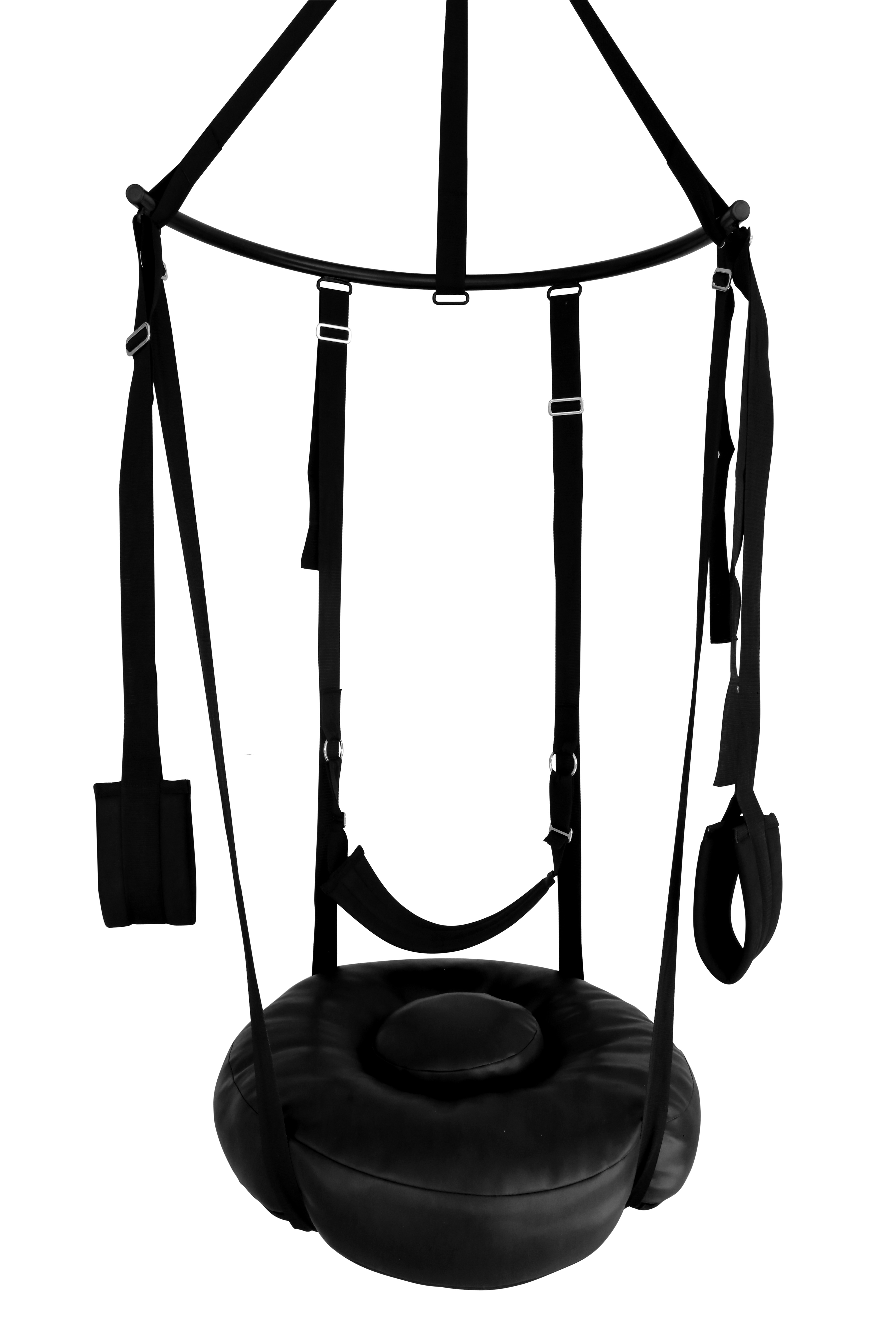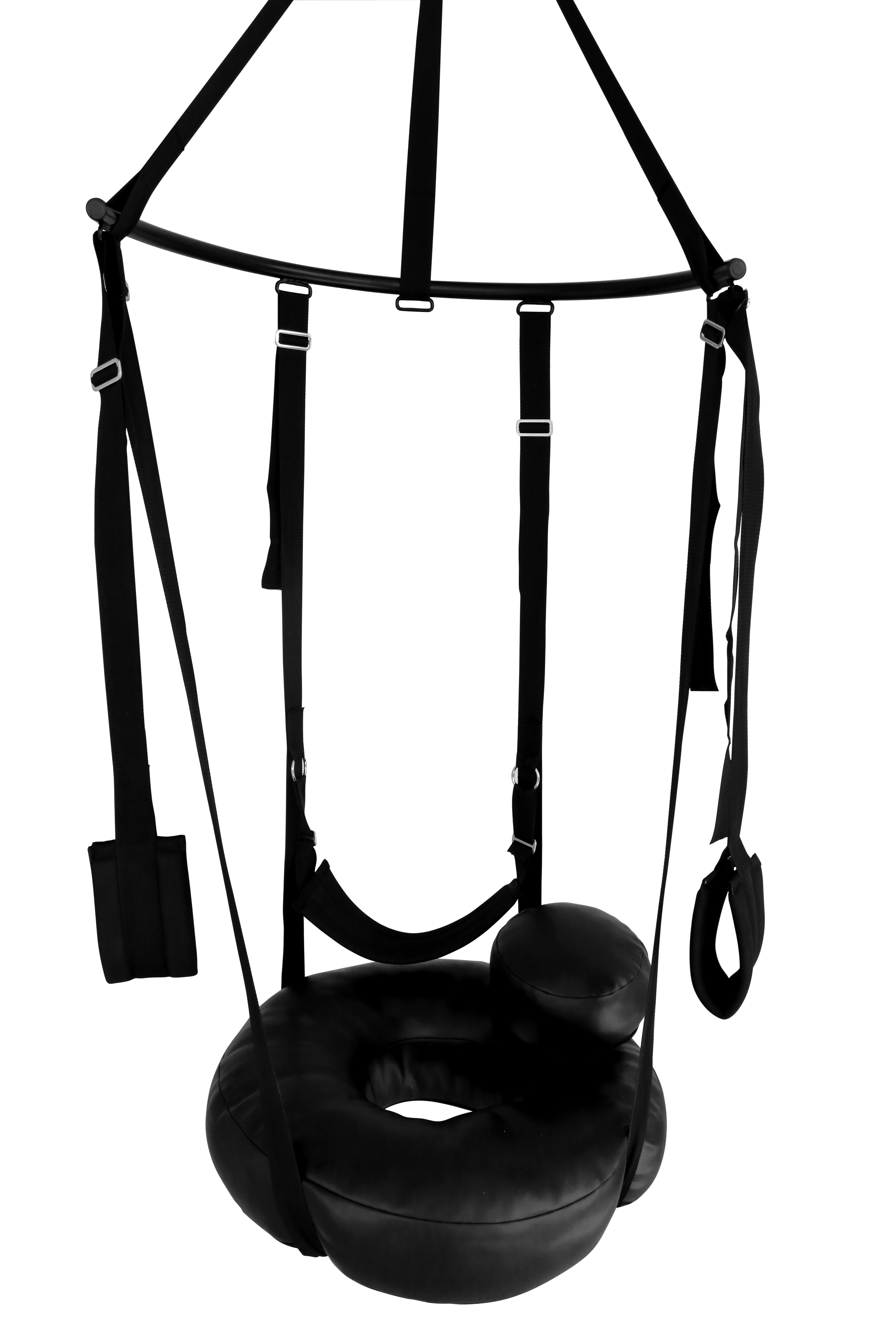 Insgesamt 4 verstellbare Gurte führen von der halbrunden Metallstange zum Sex DONUT und sind sicher befestigt,