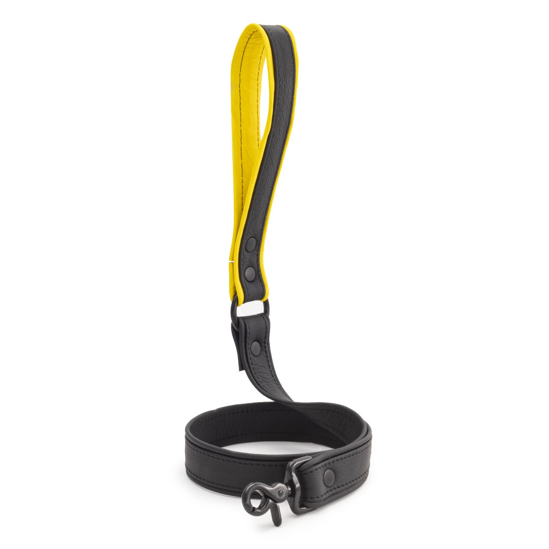 Soft Leder Leine Kurz Schwarz/Gelb