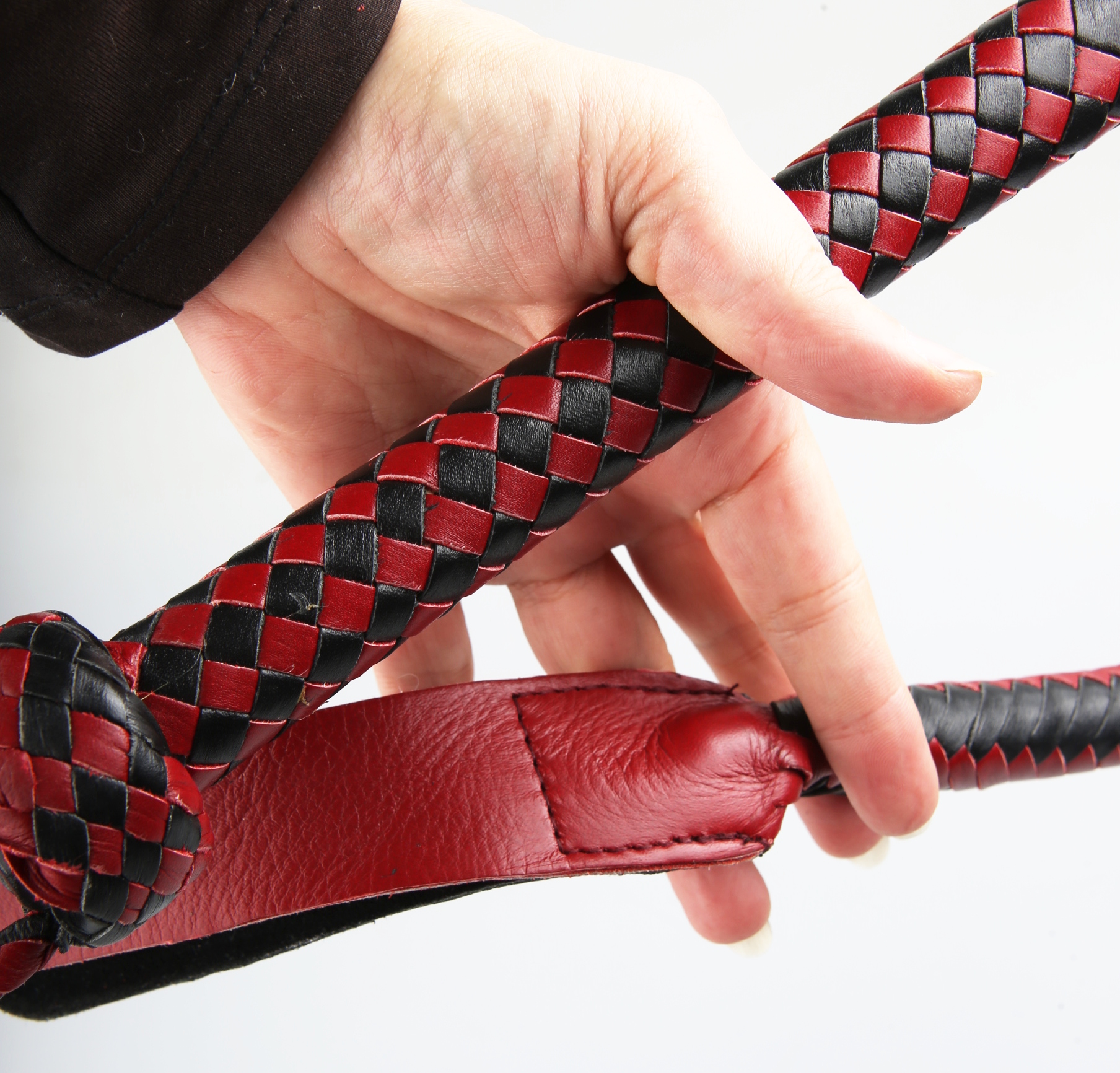 Einstriemer aus Leder - rot-schwarz mit Klatsche