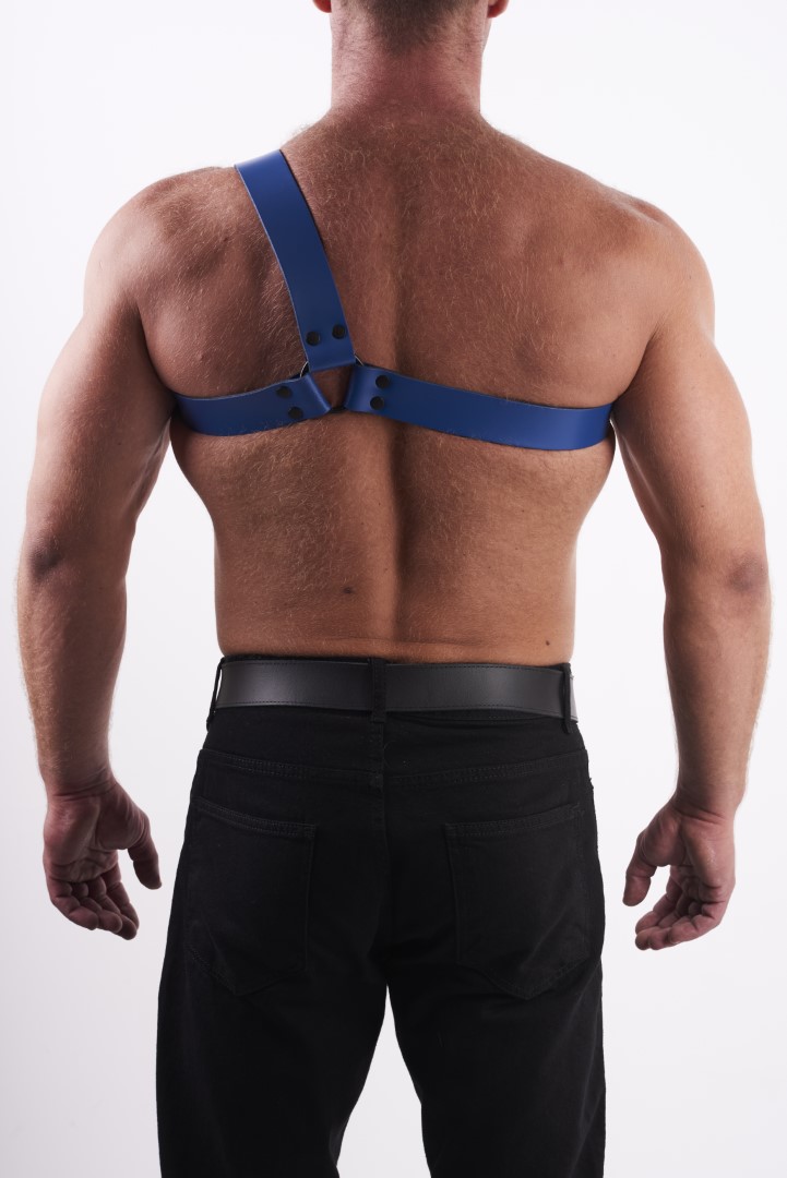 Leder Brust Harness Y Blau